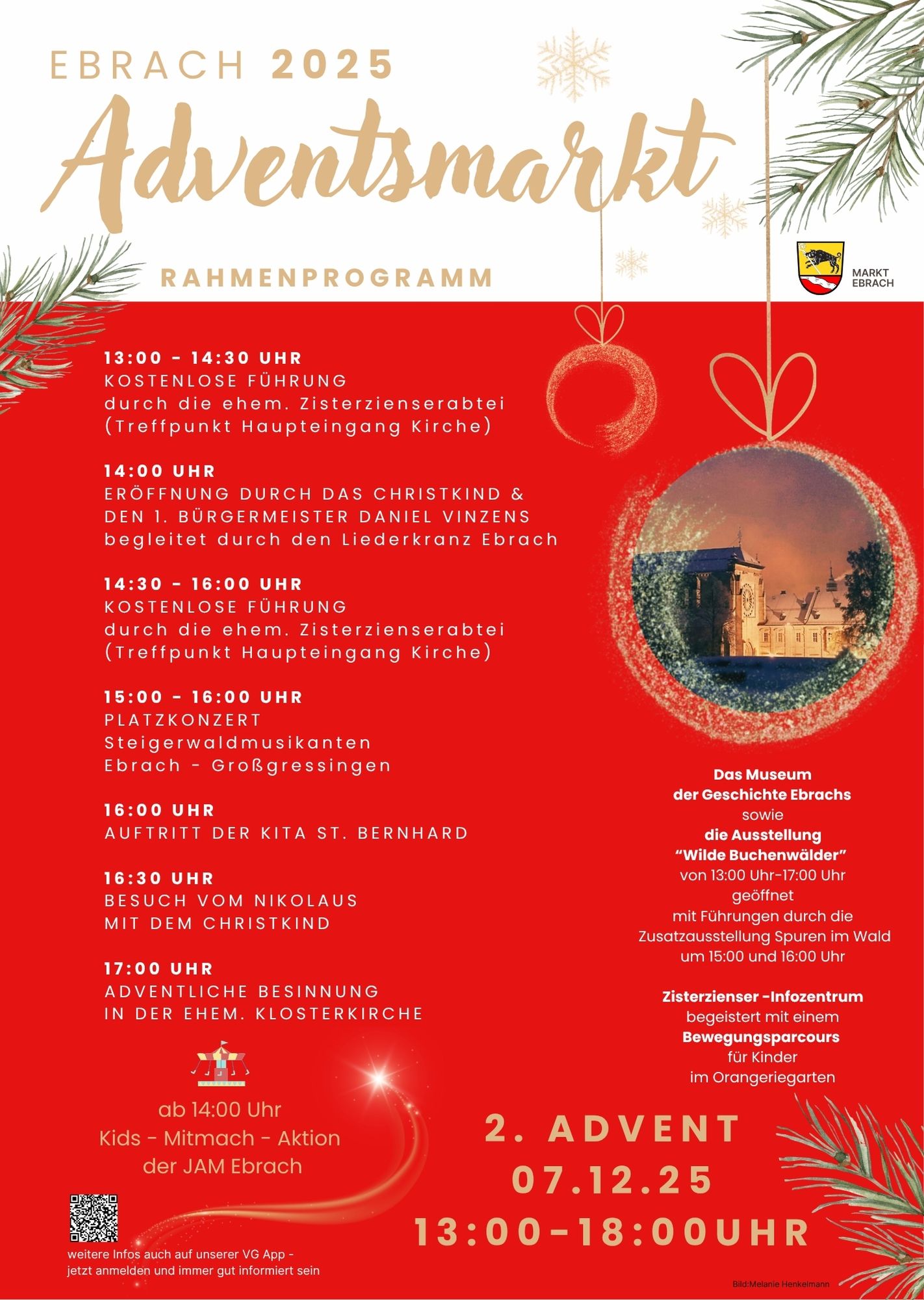 Von den Klassikkonzerten des Ebracher Musiksommers im ehemaligen Kaisersaal, über die traditionelle „Dorfkerwa“ am Marktplatz bis hin zu Kloster- und Adventsmarkt entlang der Klosterallee.